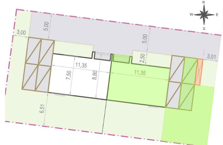 2. Brak parapetów wewnętrznych