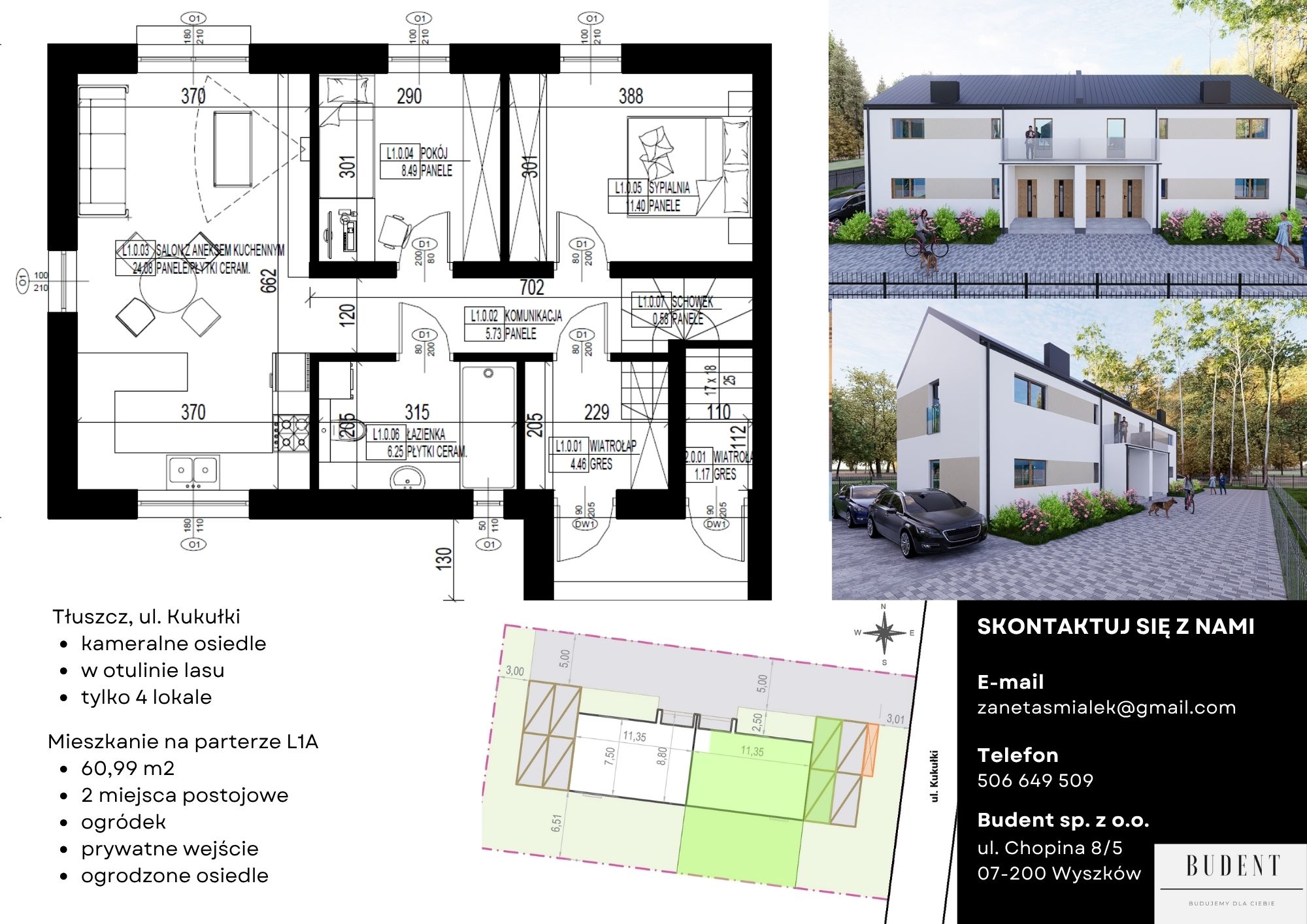 Zapraszamy do zapoznania się z naszą nową inwestycją – kameralnym osiedlem położonym w cichej i spokojnej części Tłuszcza, zaledwie kilkadziesiąt minut od Warszawy. To wyjątkowa propozycja dla osób, które cenią sobie komfort, prywatność i kontakt z naturą.