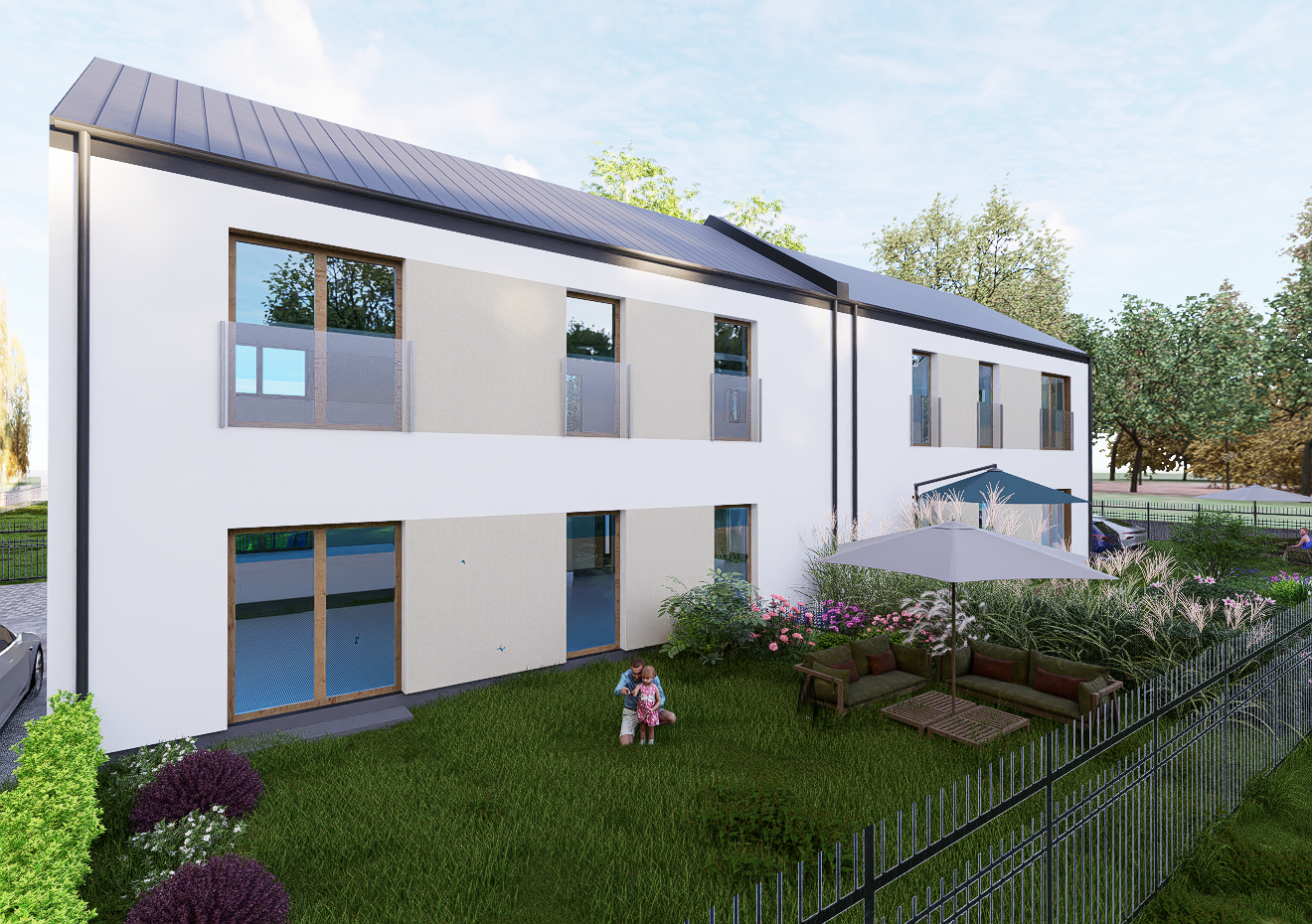 W otulinie malowniczego lasu powstają tylko 4 przestronne apartamenty, co gwarantuje kameralną atmosferę i spokój na co dzień. Każdy z nich posiada dwa prywatne miejsca postojowe, a całość osiedla jest ogrodzona, zapewniając mieszkańcom poczucie bezpieczeństwa i prywatności.