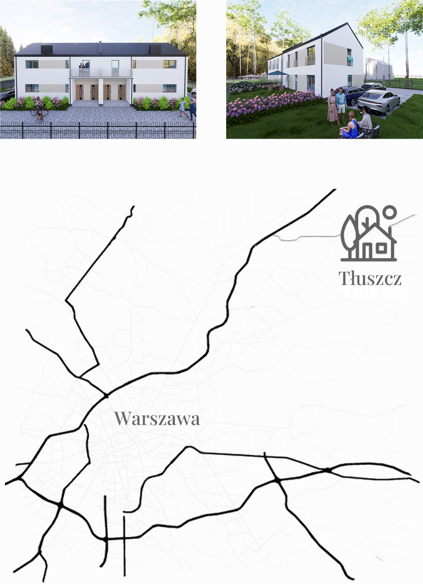 Zapraszamy do zapoznania się z naszą nową inwestycją – kameralnym osiedlem położonym w cichej i spokojnej części Tłuszcza, zaledwie kilkadziesiąt minut od Warszawy. To wyjątkowa propozycja dla osób, które cenią sobie komfort, prywatność i kontakt z naturą.